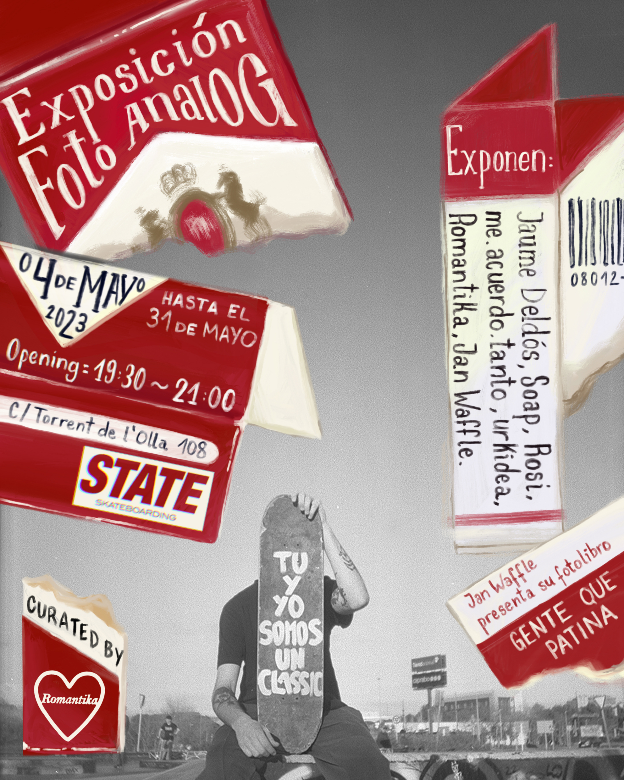 ¡El hábito que nos define convertido en arte! En mayo de 2023, nuestra tienda de skate State BCN presentó TÚ Y YO SOMOS UN CLASSIC, una exposición colectiva que reunió a 7 fotógrafos analógicos. Esta muestra exploró cómo las costumbres diarias moldean nuestra identidad hasta convertirnos en un “clásico”.
