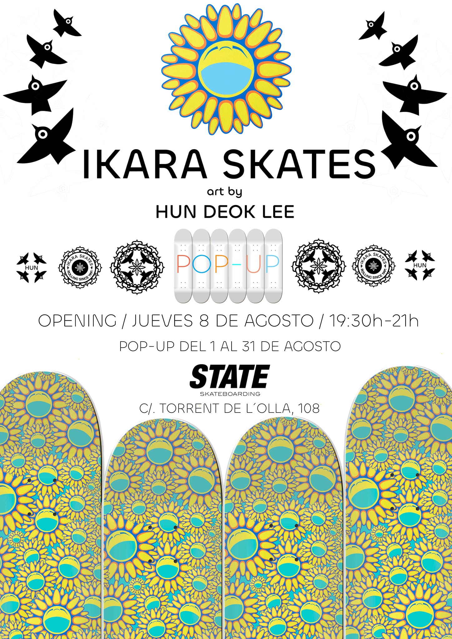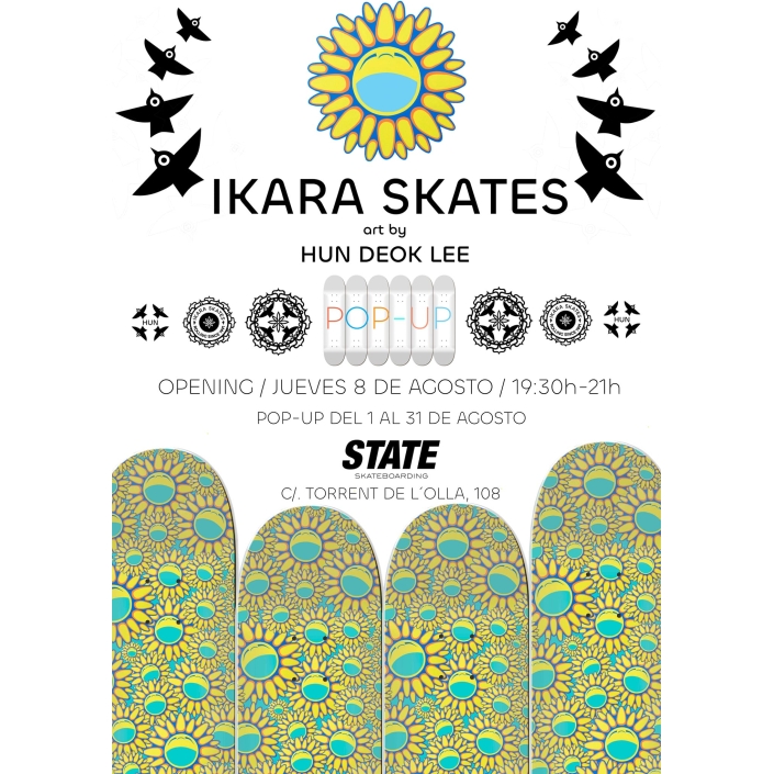 ¡Un puente cultural tendido sobre el asfalto! En agosto de 2024, nuestra tienda de skate State BCN se transformó en el escenario de una colaboración internacional única: IKARA SKATES x HUNDEOK STUDIO. Durante todo el mes, nuestro espacio acogió una exposición y pop-up que trajo a Barcelona la vibrante energía del artista coreano Hundeok Lee, fusionando su trazo inconfundible con la identidad de una de las marcas de skate más auténticas.